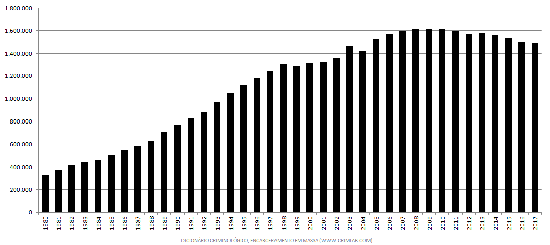 No intervalo das quatro últimas décadas, a população prisional dos Estados Unidos sofreu um aumento de 500%. Diante desse quadro, o interesse acadêmico crítico à experiência prisional se concentrou na análise das causas e dos efeitos de uma população penal dessa escala. Dois fatores foram identificados como característicos do aprisionamento em massa: primeiro, um tamanho da população prisional e uma taxa de aprisionamento notavelmente superiores ao padrão histórico e comparativo para sociedades desse tipo; segundo, o aprisionamento sistemático concentrado em grupos inteiros da população.